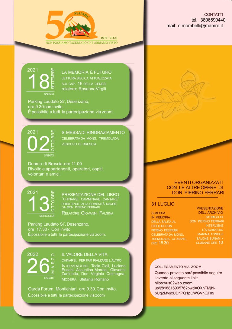 Qui è possibile visionare tutti gli eventi in programma per celebrare insieme i 50 anni di Mamré.
